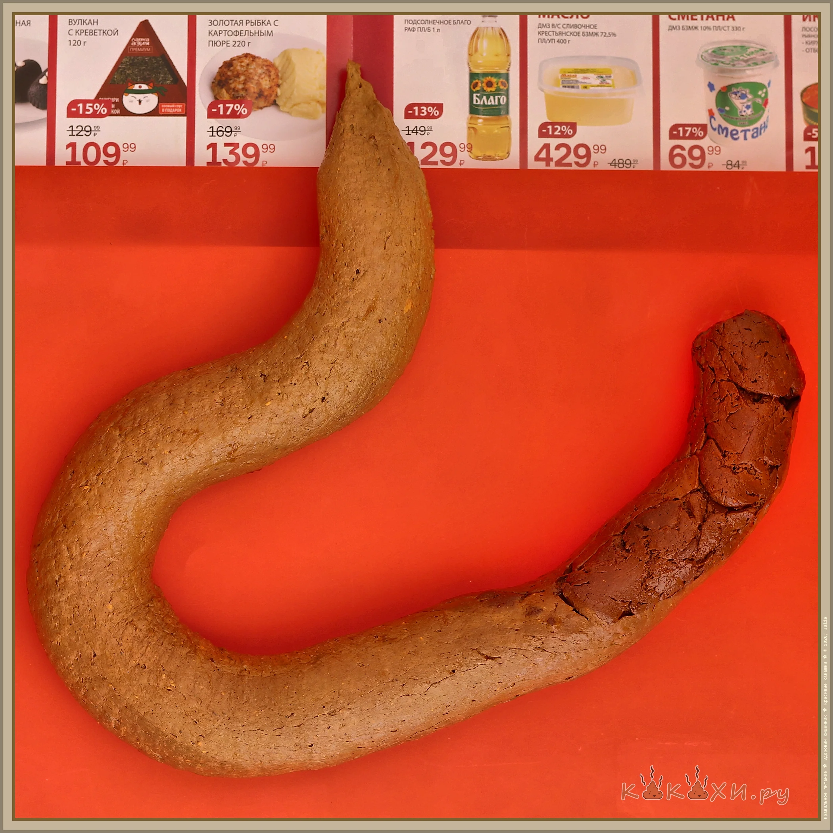 Кака № 5885 : Длинная какашка на красном фоне 1
